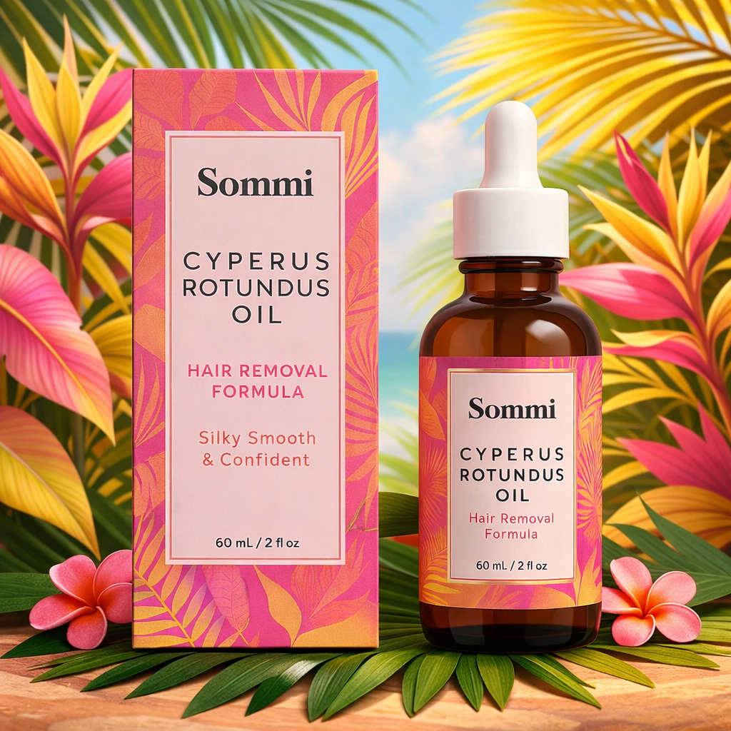 Say goodbye to the unwanted body hair. With Sommi Rotundus Oil , reduce hair growth permanently where the oil is applied. No need for inconvenient shaves anymore, say goodbye to rapidly growing hair in unwanted spots.